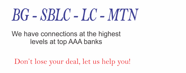 BANK INSTRUMENTS: BANK GUARANTEE (BG), STANDBY LETTER OF CREDIT (SBLC), MEDIUM TERM NOTE (MTN), LETTER OF CREDIT (LC)